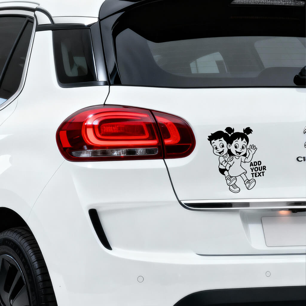 With the “Add Your Text” option, you can personalize the sticker with your children’s names or a fun custom line. The bold outline ensures great visibility on all car colors.
