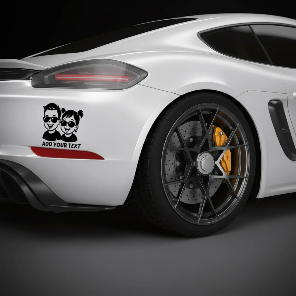 With the “Add Your Text” option, you can personalize the sticker with names or a short message, making it a fun and unique addition to your family car. The bold outlines ensure visibility from afar, combining style, joy, and safety awareness in one design.