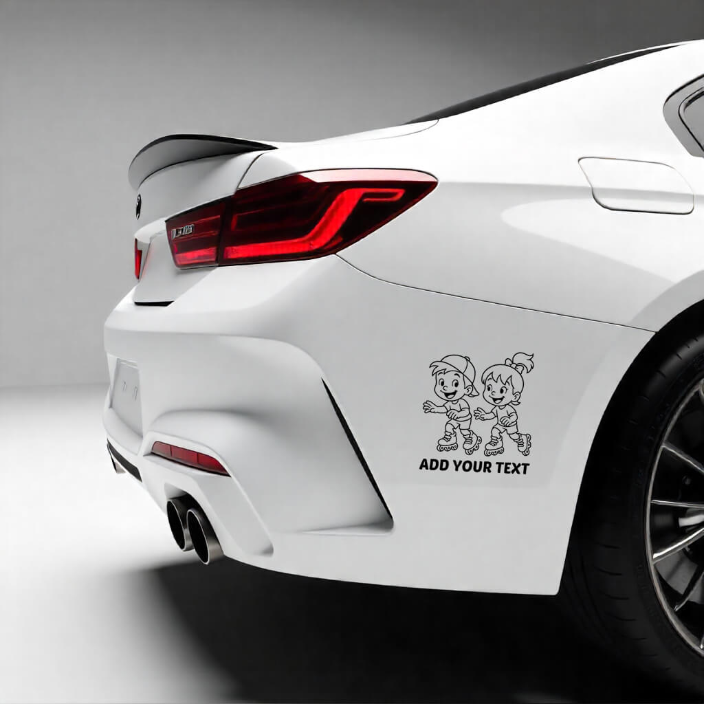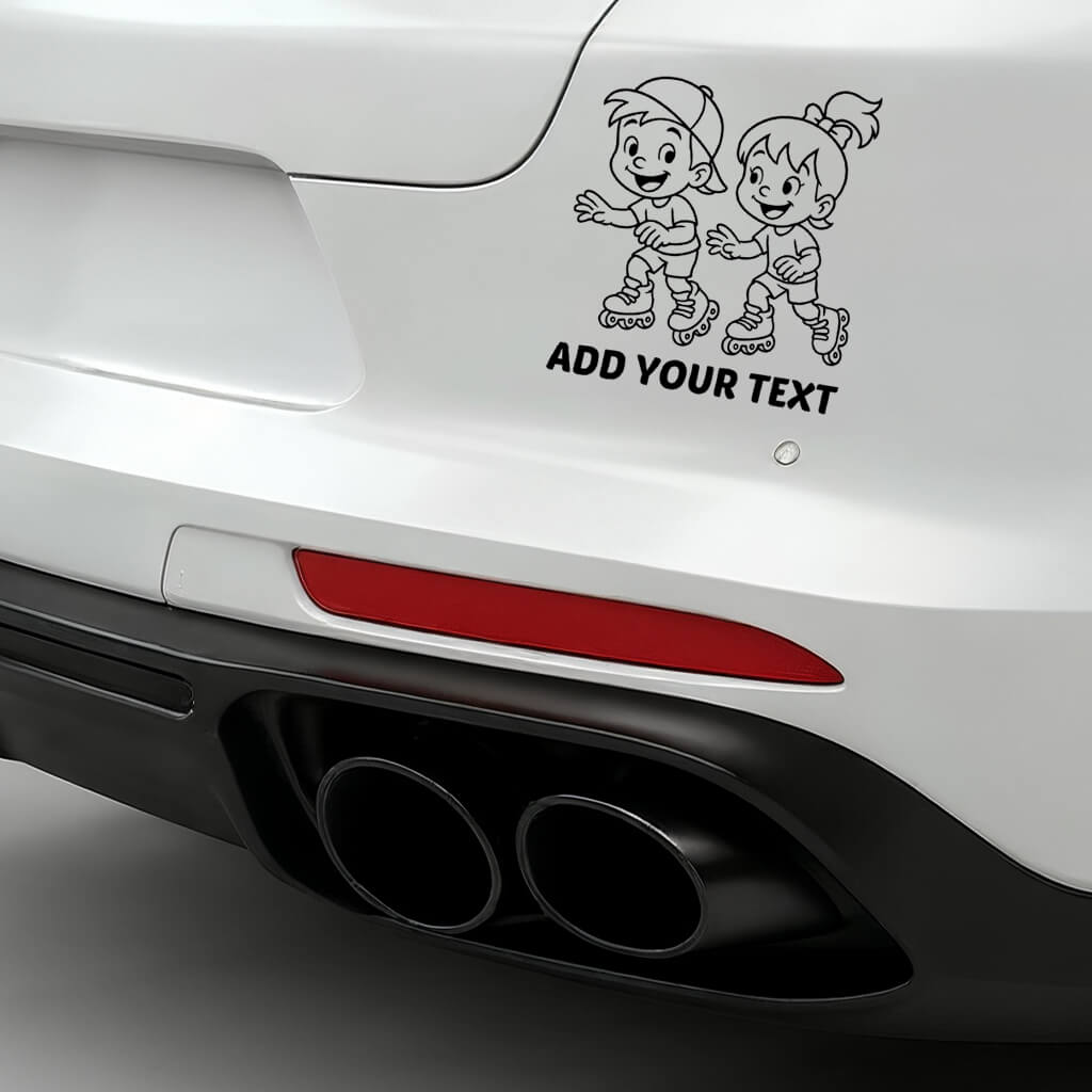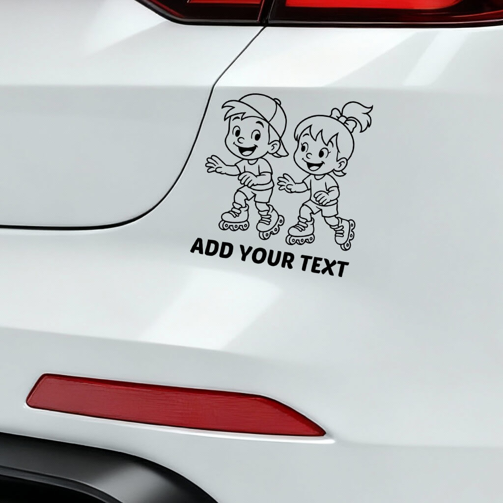 Energetic boy and girl roller skating together – playful kids car decal