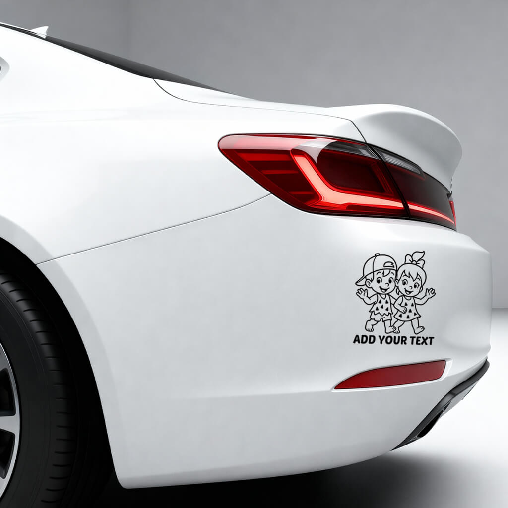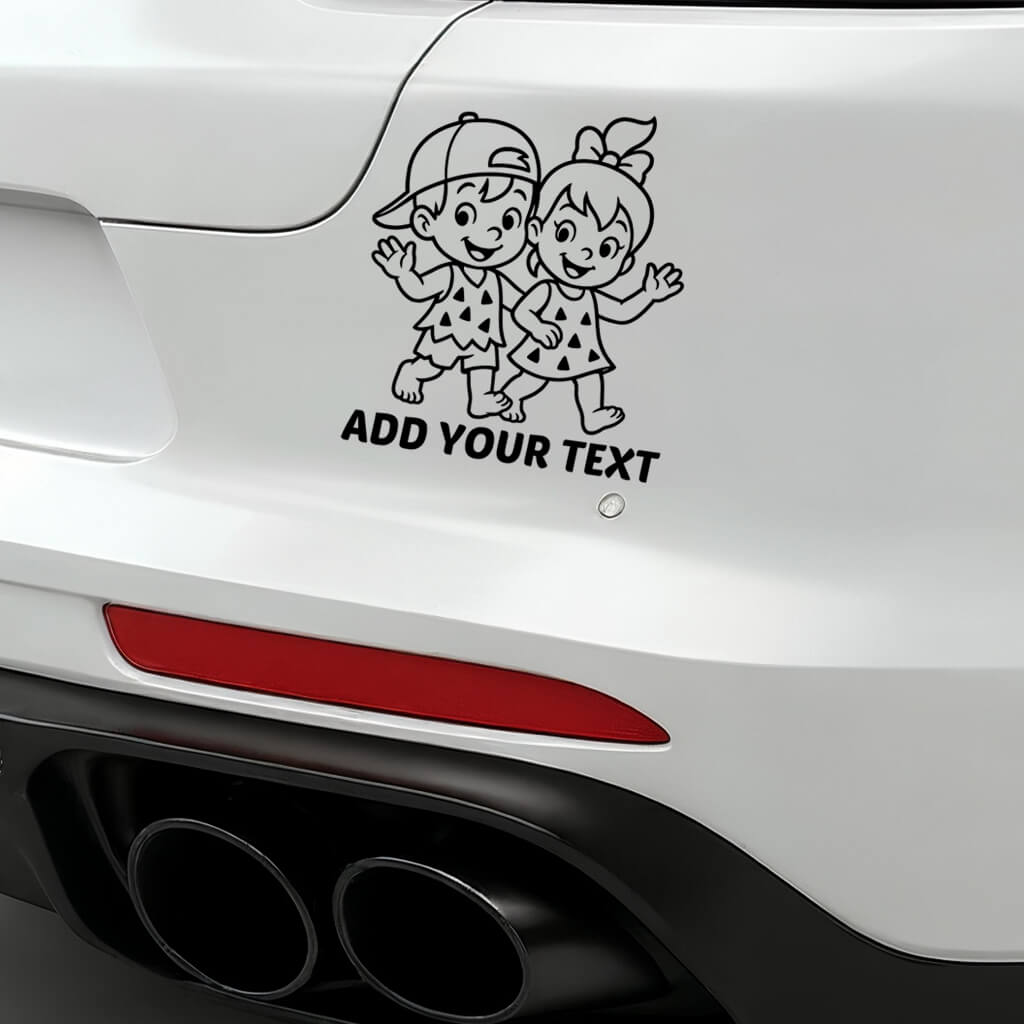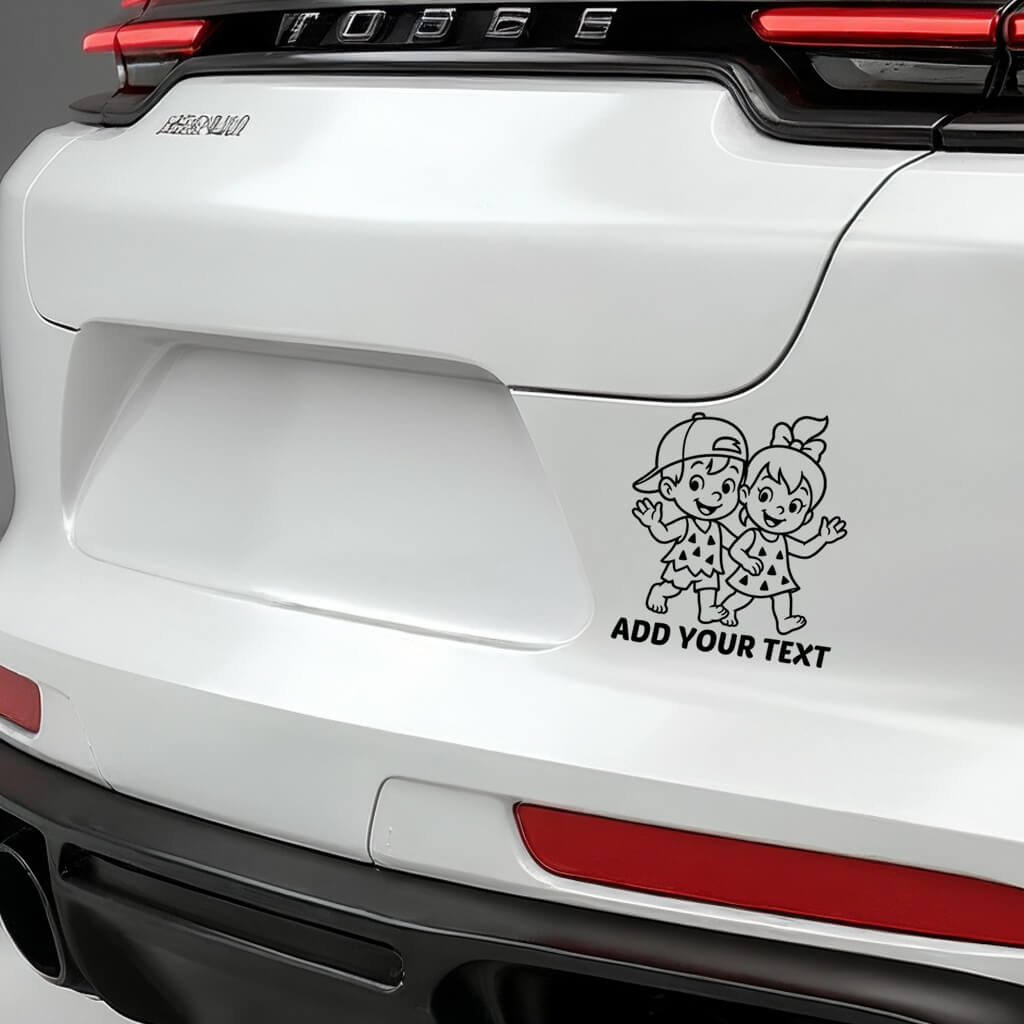 The “Add Your Text” option allows you to personalize the sticker with your children’s names or a playful message. Its clear black outline ensures excellent visibility on any car surface, giving your vehicle a cute and family-friendly look.